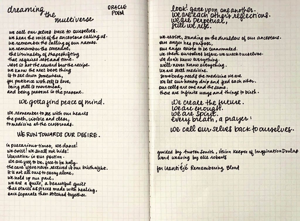 guided by Austen Smith, Vision Keeper of ImaginationDoulas, word weaving by elle roberts at Iranti Ẹ̀jẹ̀: Remembering Blood
